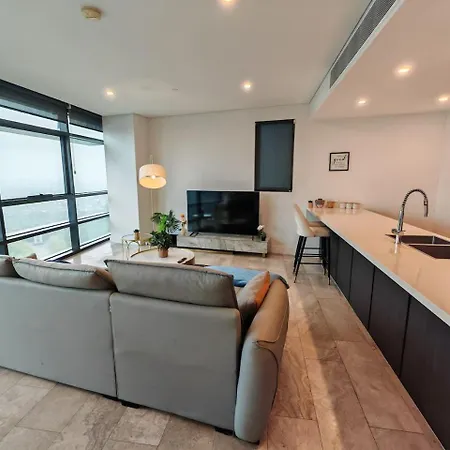 El High Level Magnificent View Apt In Olympic Park Sídney está situado a 400 metros de la estación de tren Olympic Park y a tan solo 6 minutos a pie de la Torre Treillage.
